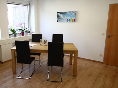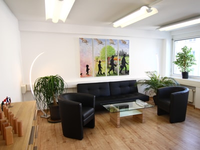 Die Praxis ist sehr umfangreich ausgestattet. Neben den üblichen Behandlungsräumen gibt es ebenfalls ein Spieltherapiezimmer. Dies eignet sich insbesondere für Eltern-Kind-Psychotherapie. Die Praxis befindet sich wenige Gehminuten von der Haltestelle Bonames Mitte entfernt. Direkt vor der Praxis besteht auch die Möglichkeit, kostenfrei zu parken. Weiterhin ist die Praxis auch sehr gut mit öffentlichen Verkehrsmitteln zu erreichen. U-Bahn- und Bus-Haltestellen befinden sich in unmittelbarer Nähe.